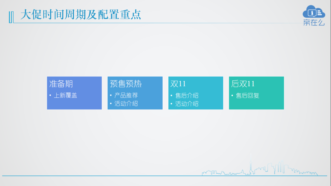 准备期要做的是上新覆盖,比如说涉及到为了商家“双11”的预售商品必须要发布一些新的链接,这个链接是在“双11”期间的;到预售预热期主要是做产品推荐和活动介绍,产品推荐还有一个很重的作用就是聚流;到了“双11”当天,反而产品类推荐会变少,主要是集中两个地方:一是售后介绍,二是活动介绍。“双11”当天是没有时间去挑产品的,主要是以售后类介绍和活动介绍。后“双11”是售后回复。 四个不同时间段在每个时间段需要做的任务安排是什么。 准备期任务安排 一是活动时间节奏,比如说预售期、预热期、特殊活动时段、返场活动时间,总共有四个阶段。 二是活动玩法。活动玩法到底是什么内容,包括单品活动利益点、全店活动利益点、专区利益点,这些利益点影响了活动的问答以及引导。 三是活动问题,就是在后台会涉及到你用官方的问题还是自定义的问题来覆盖所有活动的问题,活动的问题就是你们在做活动问法的时候,有多少是要全部覆盖了。要保证客户问你所有的问题进店了以后给出的答案都是正确的,第一个部分是把活动问题的所有内容都列出来,包括一些玩法,官方的问题以及自定义的问题。 四是新品设置,包括产品上新覆盖。 五是售后问题确认,因为只要进入活动期了以后,绝大部分是问发货是活动期间发货,特别是越临近“双11”期间的,那么发货情况、物流情况、退换货情况、修改订单信息情况就得分开。 智能辅助的话术和官方的话术是同步的,所以在基本话术这个层面上:一是基本话术要与店小蜜同步;二是了解店小蜜覆盖话术的体系和内容;三是补充话术库及快捷;四是熟悉智能辅助的应用方法。 店小蜜双11设置