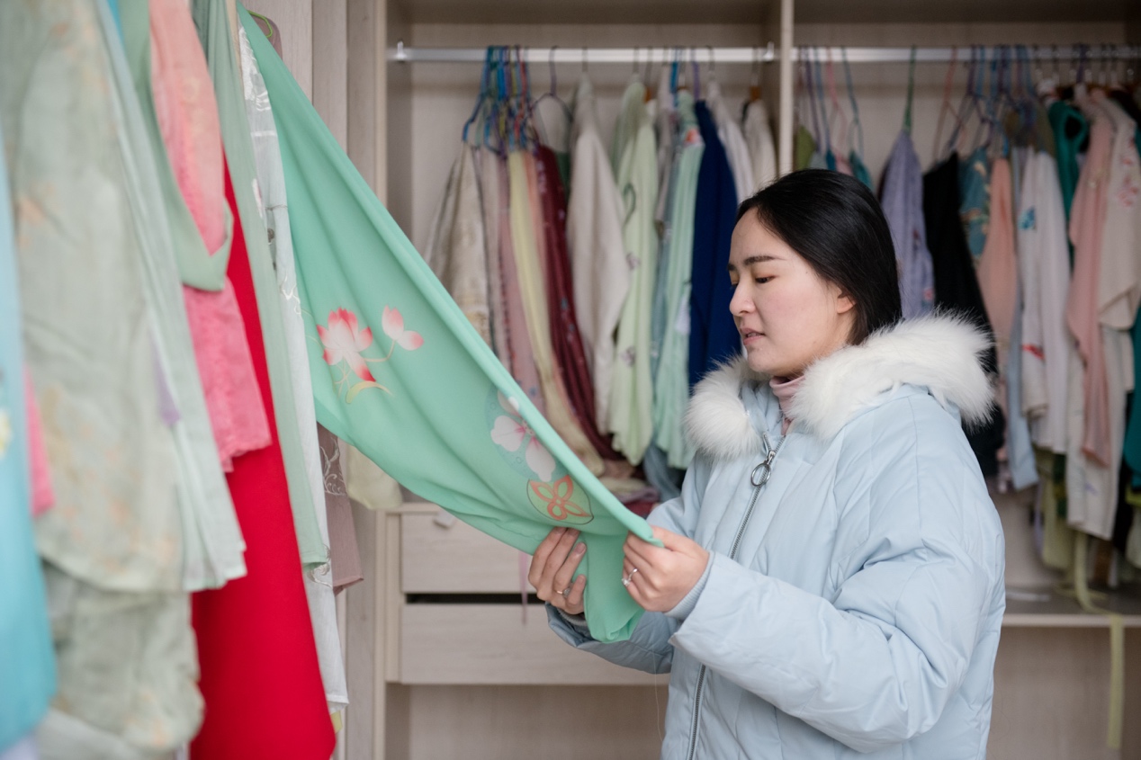 “回景德镇做直播,其实面临着很大的竞争压力。”雅婷说。不过除了主业做陶瓷之外,雅婷还在景德镇做过一段时间的汉服工作室。现在在她景德镇的家里,有一整屋的汉服。汉服不仅仅是雅婷的爱好,也是她日常的穿着,一年有200多天,她都穿着汉服上街。