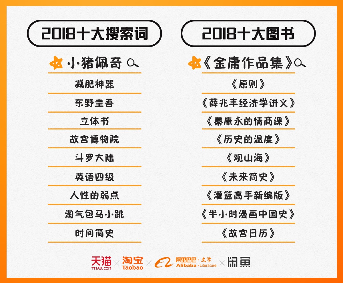 与此同时,天猫图书还首次发布“2018年十大图书热搜词”,喜感的是,“小猪佩奇”勇夺热搜词第一,“减肥神器”、“故宫博物院”、“英语四级”等纷纷上榜。在2018十大图书方面,金庸作品集以销售额200%的增幅勇夺第一,其他上榜图书有《薛兆丰经济学讲义》、《蔡康永的情商课》、《历史的温度》、《观山海》、《故宫日历》等。 80后90后为读书主力,爱电子阅读更甚传统阅读 一直以来,总有一种声音在抱怨,“如今年轻人不爱读书了”,而真相却与之大相径庭。据《2018中国人读书报告》显示,90后仍然是读书人群的绝对主力。2018年,90后在淘宝、天猫上购书人口占全网读者的37%,与占比为38%的80后不相上下。在购书读书上,女性似乎比男性更静得下来,男女读书比例约为4:6。
