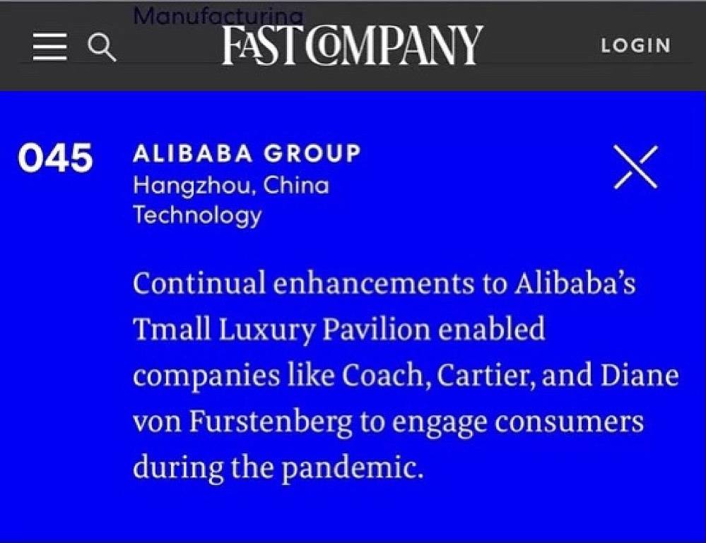 杭州淘宝代运营|中国唯一!天猫获《快公司》全球创新奖时间:2021-08-05 8月4日,国际知名商业媒体《快公司》联合咨询公司埃森哲公布了2021全球最佳创新奖项,阿里巴巴位列第45位,成为唯一上榜的中国企业。 《快公司》称,疫情以来,阿里巴巴旗下的天猫奢品平台为蔻驰、卡地亚和DVF 等国际品牌提供了丰富的消费者互动方式。 作为国内消费者接触奢侈品的主要入口之一,天猫为奢侈品品牌建立了单独的运营平台,并于今年5月启动了“双频道”战略:由天猫奢品Luxury Pavilion和奢侈品折扣聚合频道魅力惠MEI双频道双轨运营,由此来构建一个完整的奢侈品线上消费服务平台,让他们通过天猫触达新兴人群、覆盖更多门店尚未覆盖到的区域。